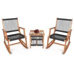 3 Piece Outdoor Wood Patio Furniture Rocking Chair Table Bistro Set
