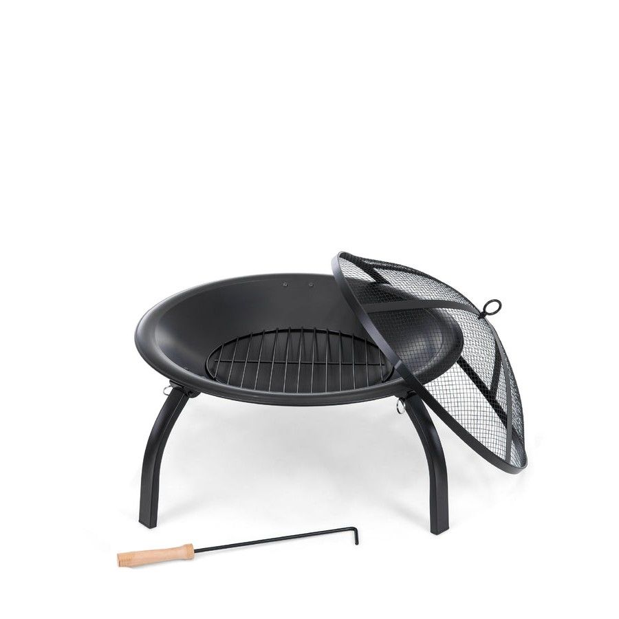 Come on baby light my fire! Burn safe with this 3 Piece Steel Fire Pit Bowl Set w/ Mesh Cover and Poker. Combines superior steel with a hand safe fire too for quick and easy maintenance, Ideal for use with charcoal, logs, or wood to stay warm or cook food like hot dogs and s’mores at the beach or when camping. Great for entertaining guests outdoors with a cozy ambiance. Comes together in two easy steps; attach the legs to the bowl with the included pins, and simply fold them out any time you’d like to enjoy your fire pit