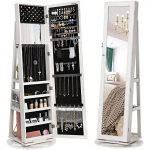360 Degree Swivel White Wash Full Length Mirror Locking Jewelry Armoire