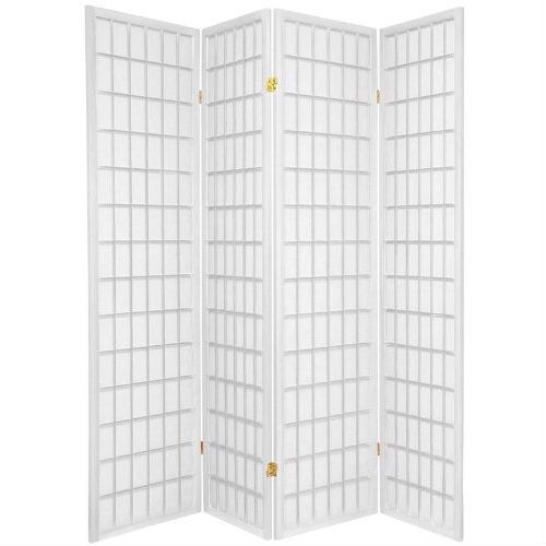 - 4-Panel Room Divider Oriental Shoji Privacy Screen in White