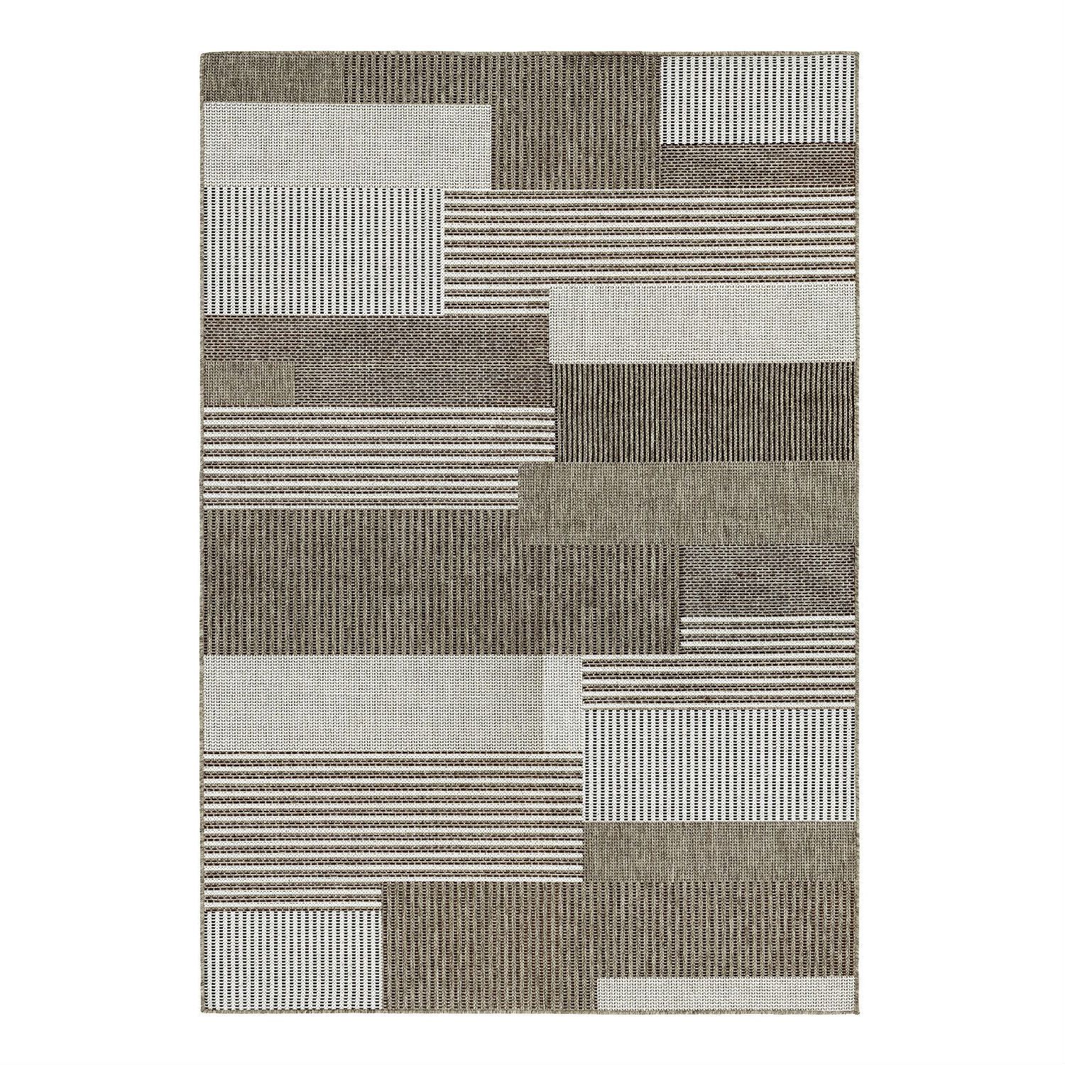 - 5’x x 7’6 Brown Sand Modern Geometric Stripe Area Rug
