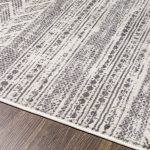 Ground your living room, bedroom, or home office with the laid-back modern style of this 6.6-ft. x 9-ft. Grey Ivory Chevron Stripe Geometric Boho Style Area Rug. It features bands of geometric patterns in shades of gray and ivory. This 6.6-ft. x 9-ft. Grey Ivory Chevron Stripe Geometric Boho Style Area Rug is power-loomed from polypropylene and distressed for a vintage look. Its .28″ pile height is cozy underfoot. To care for this, vacuum with no beater bar/rotating brush. For extra cushioning and to prevent this rug from slipping, we recommend adding a rug pad (sold separately) underneath. This 6.6-ft. x 9-ft. Grey Ivory Chevron Stripe Geometric Boho Style Area Rug completes the look in any industrial, rustic, or bohemian setting.