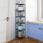 Maximize your space and turn any corner into a functional use of space with this 65-inch Freestanding Heavy Duty Corner Pot Rack 6-Tier Kitchen Shelf. Perfect for the kitchen, Cleverly tucks away in a corner, allowing you to turn an awkward waste of space into a functional storage nook. 6-tier corner shelves crafted from a solid metal frame, the stainless-steel corner shelf stand is quite robust and durable, lasting for long-term use. The kitchen corner storage shelves can fit in every nook and cranny of your home, and stand flush against the wall to make good use of the limited corner space. Best Kitchen Cabinet Pantry Organizer for your Lids, Pots, Pans, Cast Iron Skillet, Griddles, Baking Pan, Cutting Boards, and Serving Trays. The excellent material makes the product have a great load-bearing force, and it is not easy to collapse when things are put on it, and it can carry kitchen utensils stably. The capacity of six layers can put down the Pots and pans that are usually needed, and the open space is easy to take, without unnecessary opening and closing action.