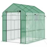 - 7 ft x 4.7 ft Outdoor Greenhouse with Steel Frame and Green PE Cover