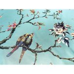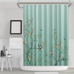 - 72-in. Teal Blue Green Floral Tree Bird Butterfly Japanese Style Shower Curtain