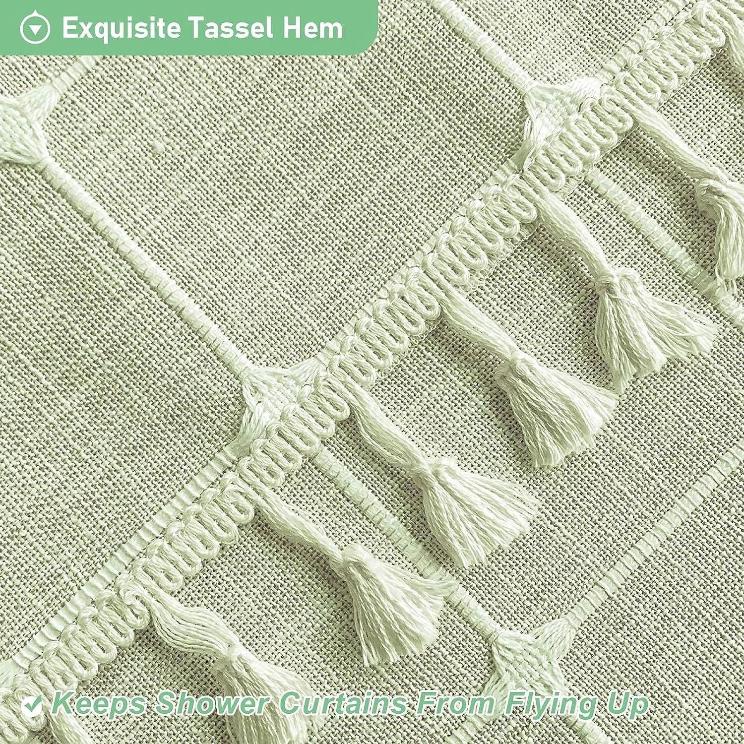 - 72-inch Farmhouse Green Cotton Linen Blend Shower Curtain with Boho Tassels
