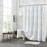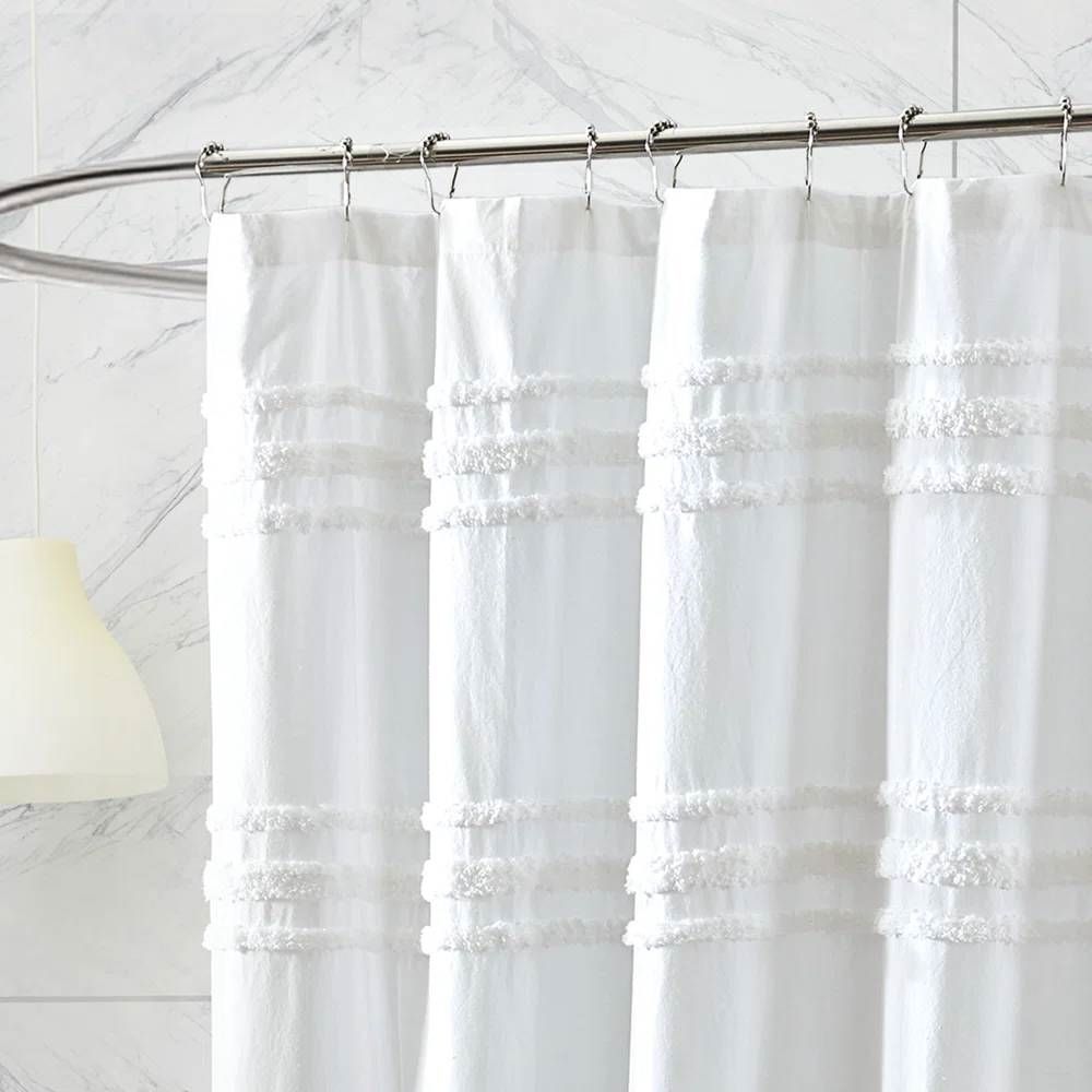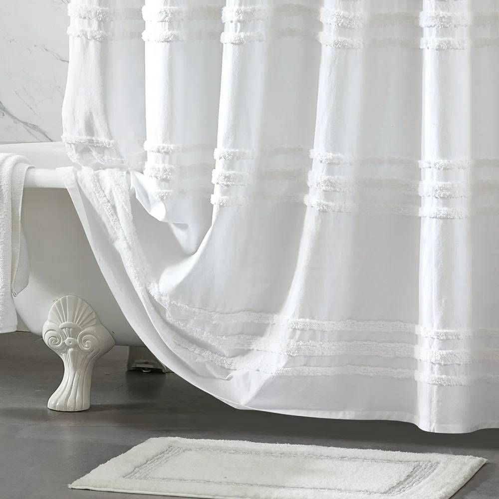 - 72-inch White Cotton Chenille Stripe Shower Curtain – Machine Washable