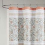 For a charming and stylish touch to your bathroom, this 72 x 72-inch Cotton Shower Curtain with Coral Orange Blue White Paisley Pattern holds all of the perfect elements to do shabby chic the right way. A mixture of coral, orange, and hints of green are printed in a paisley design alongside pin tucked white fabric that is separated by beautiful lace taping. Finished with 12 button holes at the top makes this shower curtain easy to assemble hooks and simply hang on any standard rod (hooks and rod not included). This shower curtain is also OEKO-TEX certified, meaning it does not contain any harmful substances or chemicals, ensuring quality comfort and wellness. Each shower curtain measures 72×72″ and is machine washable for easy care; to keep this shower curtain in the best condition a water repellant liner is highly recommended (liner not included and should be purchase separately).