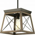 This Antique Bronze Dimmable Light Lantern Geometric Chandelier crisscross metal supports lend a nod to barn door designs, while a painted faux wood finish enhances the open steel frameÂ’s rustic character. This pendant accommodates dimmable 100 W maximum light (bulb NOT included). Compatible with standard and sloped ceilings.