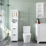 Featuring a lightweight design, the Bathroom Cabinet Tower with 3 Storage Drawers and 2 Shelves in White Wood Finish is convenient to move around if needed. Constructed in a cube shape with high-quality MDF boards, the cabinet is capable of holding up to 10kg/22lb for each shelf, and another 11lb for each drawer. The 2-tier open storage is suitable for displaying or placing frequently-used items. And, the lower 3 drawers are suitable for storage, providing good protection against dust and dirt. A mix of open shelves and hideaway drawers brings more flexibility to your daily storage. It’s ideal for storing and organizing toilet paper, towels, cosmetics, cleaning products and more.The wooden floor cabinet is white and modern. Its clean-lined design with slatted paneling works well in a variety of aesthetics. A good addition to the bathroom, laundry, living room, bedroom or anywhere space is limited.