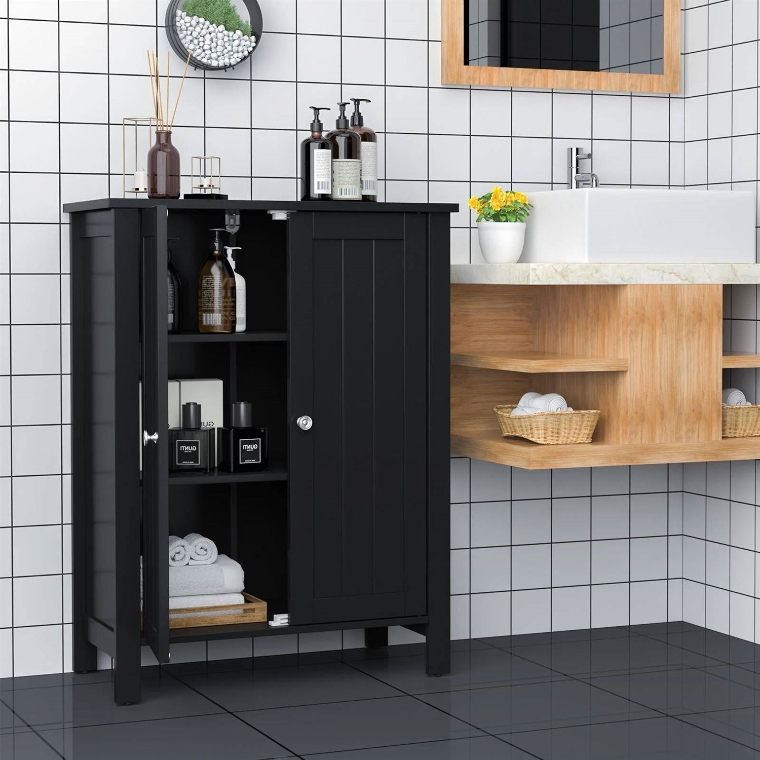 - Bathroom Storage Cabinet with Adjustable Shelves in Black Wood Finish