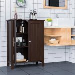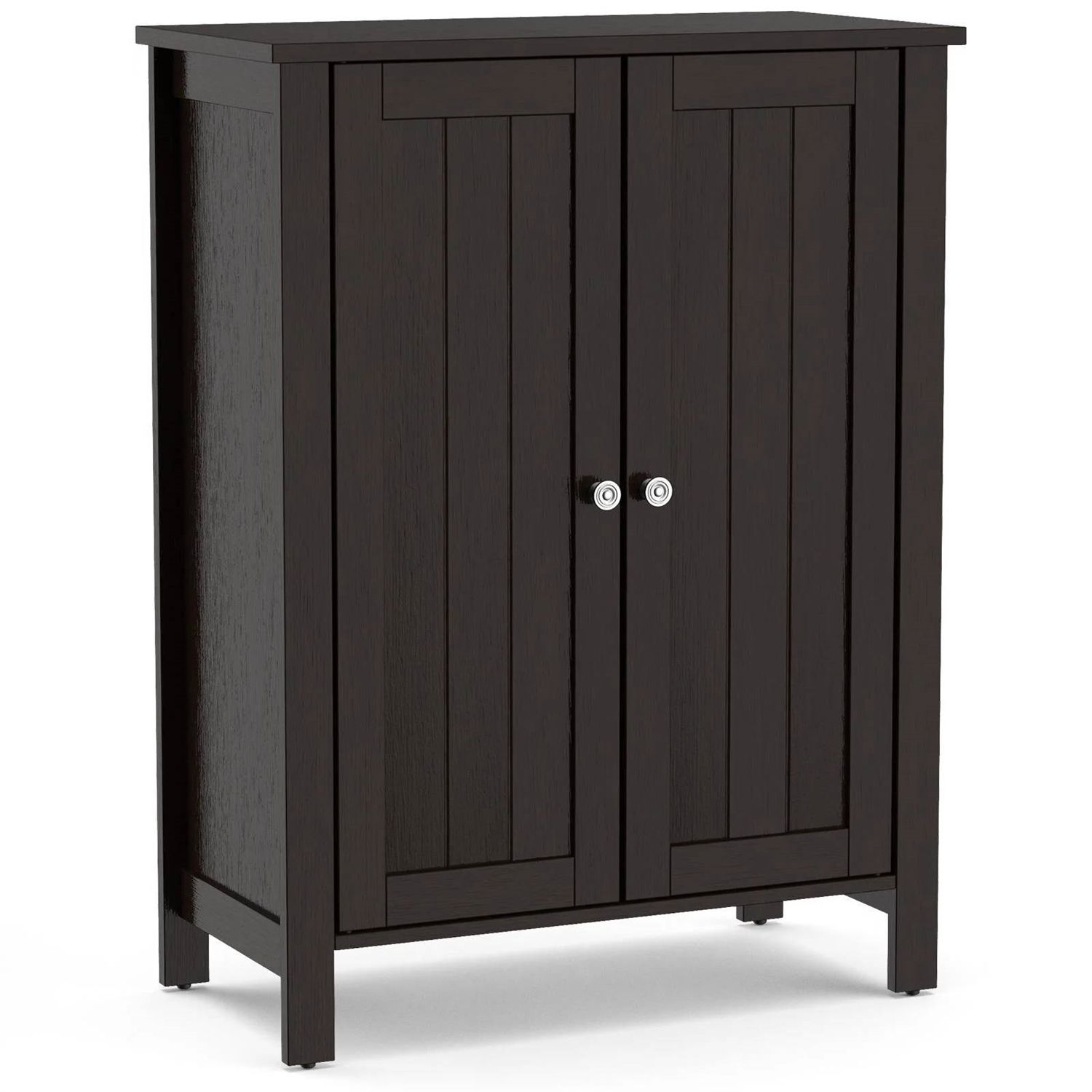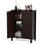 - Bathroom Storage Cabinet with Adjustable Shelves in Dark Brown Wood Finish