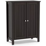 This Bathroom Storage Cabinet with Adjustable Shelves in Dark Brown Wood Finish features 2-tier storage shelves inside, which offers you ample storage space to hold towels, toilet articles, cosmetics, etc. Besides, 2 shelves can be adjusted with 6 positions to meet your different storage height requirements. Made of premium MDF and engineered wood, this bathroom storage cabinet is sturdy and durable for a long lifespan. And the overall structure is very stable and not easy to shake. It is equipped with anti-skid foot pads to prevent the floor from being scratched. The storage organizer can be used as a bathroom cabinet, sideboard, console table, or shoe cabinet to satisfy your various needs. With clean lines and elegant style, the cabinet can easily blend into any decor. It is perfect for the bathroom, living room, bedroom, corridor, and more. The closed storage room with double doors can keep your stuff dry and clean. 2 metal knobs make it convenient to open and close. In addition, the storage cabinet is designed with a wall anchor kit to avoid tipping over and wobbling for extra safety. The Bathroom Storage Cabinet with Adjustable Shelves in Dark Brown Wood Finish comes with clear and brief instruction, which has straight forward illustrations and descriptions. Each screw and pin has its own code to take you little time and energy. And its smoothly painted surface is waterproof and easy to keep clean.