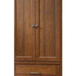 Bedroom Wardrobe Cabinet Storage Armoire in Medium Brown Cherry Wood Finish Garment rod included Wrought iron style hardware and accents Easy-glide drawer Made with solid wood, MDF, and wood veneers. Washington Cherry finish