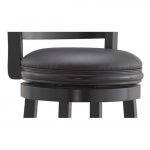 Accent your bar space with this classy and stylish Black 29-inch Swivel Seat Barstool with Faux Leather Cushion Seat. Its attractive and durable design is a perfect fit for all decor settings. It occupies less space and proves highly useful when you have guests at home.This stool has a solid hardwood construction that ensures it lasts for many years to come. The lustrous finish lends it a timeless look and adds to the appeal. It is fitted with a rich faux leather seat with high density foam to offer comfortable seating and enhance its appearance. It has flawlessly crafted French style legs with tempered bottoms. The steel ball bearings keeps it steady. The swivel ensures unrestricted movement. While the full ring footrest lends more strength and stability. The back support makes the seating experience more relaxed.The bar stool has a weight capacity of 250lbs. Its seat height is 29”. The overall dimensions of the bar stool are 43.5” in height, 17” in width and 18” in depth. It is available in different shades to best suit your decor. This stool is best paired with an elegant bar table to complete the sophisticated look of your decor.