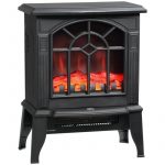 Black Electric Fireplace Heater with Realistic Log Flame LED