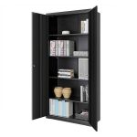 Black Steel Lockable Storage Cabinet Shelving Unit with 4 Adjustable Shelves