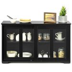 - Black Wood Buffet Kitchen Dining Sideboard Storage Cabinet w/ Glass Sliding Door