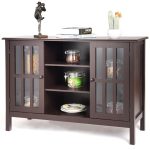 This Brown Wood 43-inch TV Stand Storage Cabinet Console Table will be an elegant and useful furniture in your house. It contain 2 cupboards and 3 display shelves – all with large capacities to satisfy your demand to place many things. This item is skillfully crafted mainly with solid MDF and chipboard plus tempered glass on the window with its foots made of pine. It helps you to place your things in order and will fit any kind of house style. It’s an excellent choice to buy. If you are looking for such a TV cabinet, don’t hesitate to take it home!