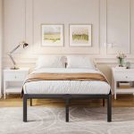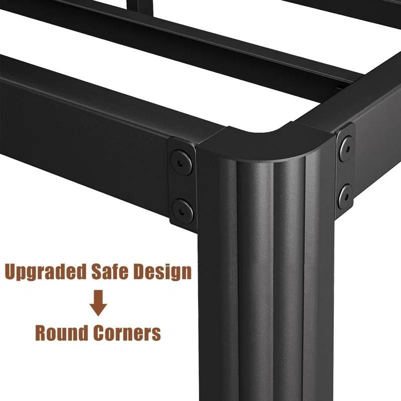 - Enduring strength and stability with our heavy-duty bed frame. Thickened legs reinforce the bedframe, providing a sleek and secure appearance with rounded corners. The robust iron slat construction bears substantial weight without any squeaking or noise. Non-slip and anti-scratch pads on the bed legs protect your flooring, while the steel slat foundation enhances the lifespan of your mattress.