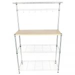 • Carbon Steel Kitchen Bakers Rack with MDF Wood Shelf and Hanging Bar with Hooks