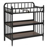 Delight in traditional beauty with this Black Wood Changing Table with 1-inch Waterproof Changing Pad. Intricate spindle posts deliver classic grace from top to toe, for a perfect pairing with the Jenny Lind Crib. Spacious, open shelves keep diapers and lotions within easy reach for convenient changings. Changing pad and safety strap are included.