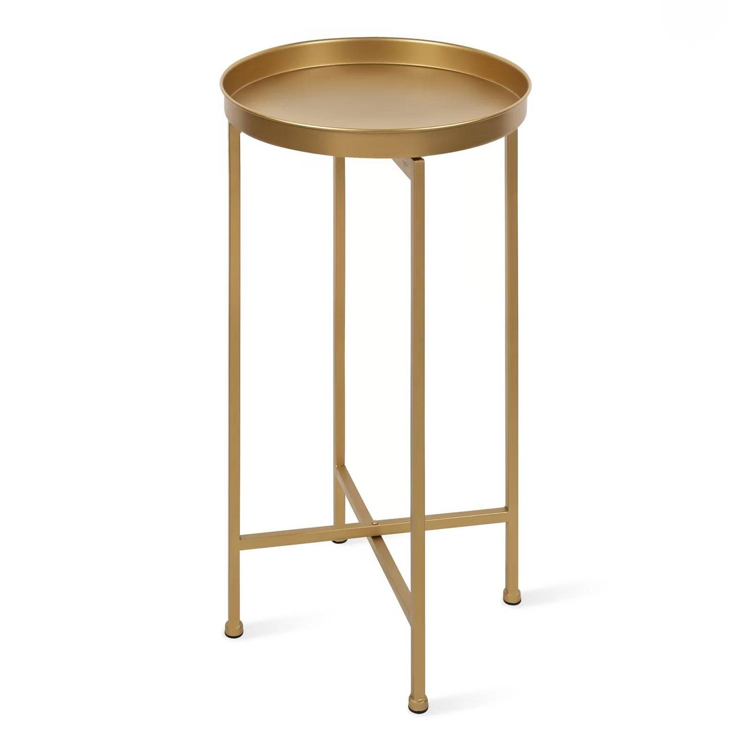 - Classic Gold Finish Metal Round End Table Nightstand with Removable Tray Top