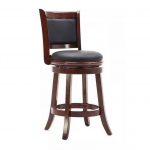 • Counter Height Barstool in Cherry Wood Finish with Black Padded Swivel Seat