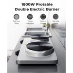 This Dual Heating Infrared Portable Electric Countertop Burner has 2 heating plates that work separately with each electric power of 1200W and 600W. Offers 5 levels of temperature control to easily meet any cooking needs. Turn on/off by simple turning of the knob/s. Also, comes equipped with a thermostat, when it reaches the set temperature, it will automatically cycle on/off the power to maintain the set temperature, preventing overheating. 2 heating plates are sized 7.4” and 6.1” diameters for all sizes of cookware. Easy to clean and can go anywhere!