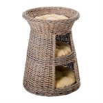 Stimulate your cat’s natural instincts to jump and lounge with the Eco Friendly 3 Tier Round Rattan Wicker Elevated Cat Condo Bed Beige. Provides a soft comfortable haven for security and rest. Made of natural Eco Friendly wicker and very sturdy.