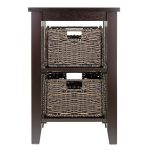 This sturdy Espresso 3 Tier Bookcase Shelf Accent Table with 2 Small Storage Baskets is ideal for displaying your treasures, storage, nightstand, small table, kids room, or your books. Simple and elegant design is a perfect additional to any home. Comes with 2 Corn Husk Baskets to create a new function and look for the shelf. Suitable and functional in every room.