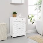 Achieve more for less with the FarmHome White 2 Door Floor Bathroom Storage Cabinet. A pure white white color and louvered doors this bathroom furniture piece brings a refreshing coastal farmhouse atmosphere. The bathroom cabinet comes 1 large cupboard equipped with 1 adjustable shelf with 5 heights and 1 large drawer, youÂ’ll be able to store your beauty products in this 23.6 inches L x 11.8 inches W x 31.5 inches H cabinet.