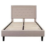 - Full Beige Fabric Upholstered Platform Bed Frame with Tufted Headboard
