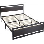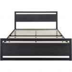 - Full Black Metal Platform Bed Frame with Wood Panel Headboard and Footboard