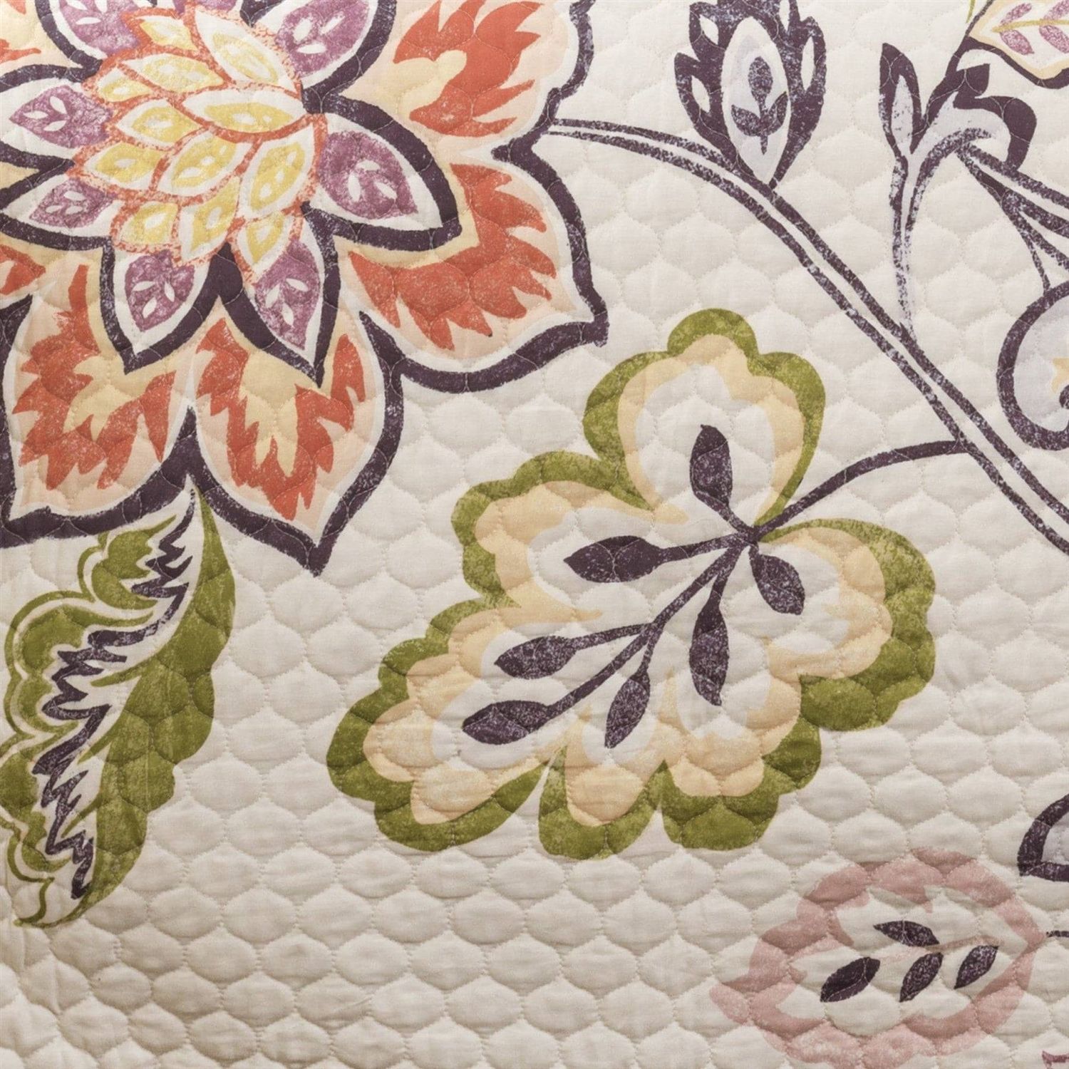 Full/Queen 3 Piece Floral Boho Cotton Off-White Navy Pastel Quilt Set