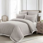 Unwind in style with this Grey Thin Lace Trim 5 Piece Comforter Set. With its cozy vintage farmhouse charm, this bedding set is simple in design and easy to coordinate and layer for a complete look. The lace detailing adds elegance and a bit of texture to your bedroom design. The lace trim adds lovely flair to an otherwise minimalist look that can also fit into farmhouse, vintage charm, traditional, cottage or French Country themes. This set includes one comforter, two shams and two euro shams. Labeled safe to machine wash and tumble dry.