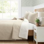 The reversible design of this Full/Queen Lightweight Fern Leaf Reversible Cotton 3 Piece Quilt Set offers you two neutral solid looks, allowing you to effortlessly switch between classic elegance and modern simplicity. The front of the quilt is a soft neutral beige, and the reverse is a crisp, clean white. This thin/lightweight Leaf Reversible Cotton Quilt 3 Piece Set not only boasts an exquisite embroidered design but also ensures cozy comfort. With cotton fabrication and a lightweight polyester fill, this quilt provides breathability and softness for year-round use, creating an inviting ambiance in your primary or guest bedroom. Set includes one soft quilt and two matching pillow shams. This quilt set easily fits into many different decor styles including coastal, minimalist, transitional, or Scandinavian. Perfect for those hot summer nights!