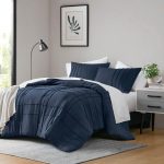 Sleep in comfort and style with this beautiful pinch pleat comforter with grid pattern. The perfect balance between being fluffy and lightweight. Filled with premium polyester for optimal warmth, it makes an ideal choice for year-round use. Enjoy cozy nights in the winter and refreshing breathable comfort throughout the year. The pre-washed microfiber fabric combines enhanced softness with durability, ensuring long-lasting comfort and practical use. This soft-washed comforter set showcases a chic pinch-pleat design, and the matching shams feature an overlapping enclosure to keep the filling in place. Crafted from 100% premium polyester microfiber, this comforter set is made lightweight for year-round comfort.