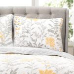 Full/Queen size Yellow Grey Floral Light Thin Cotton Polyester Blend Quilt Set