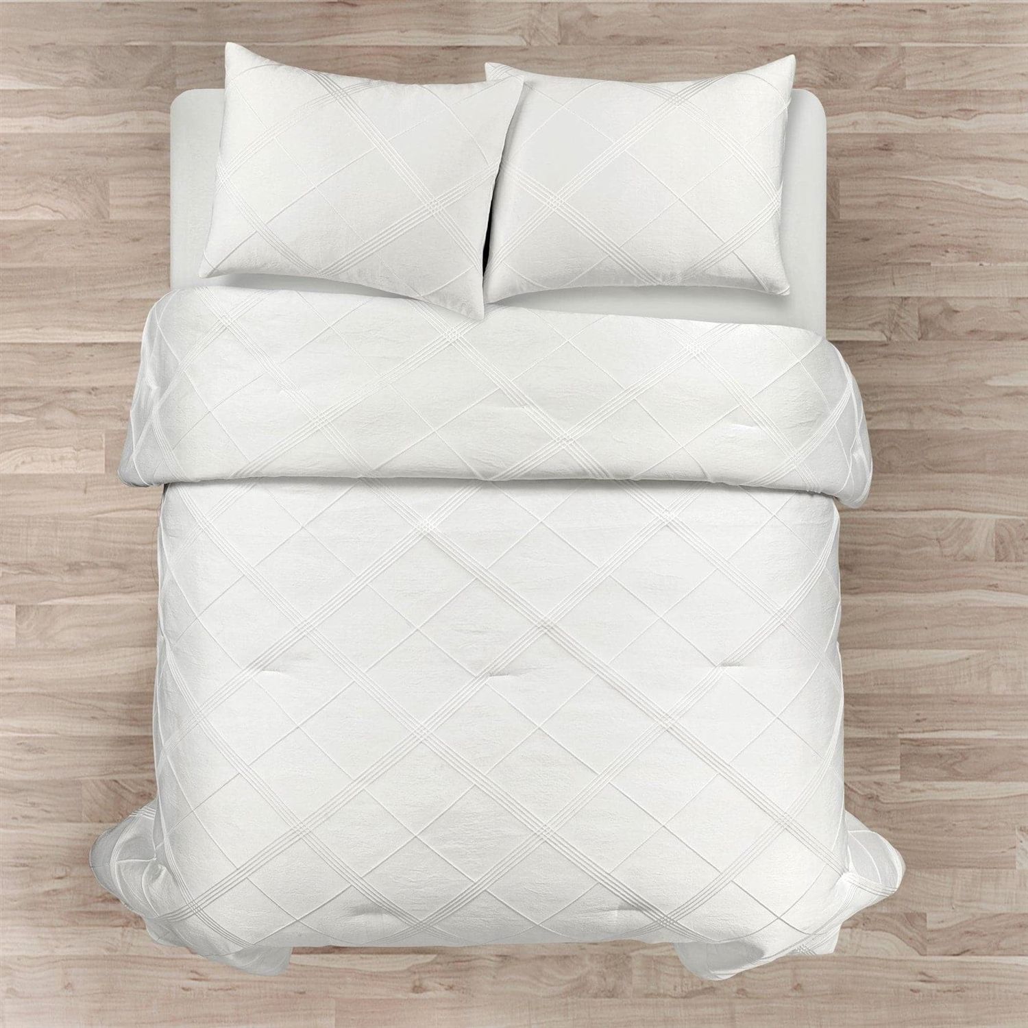 The diamond jacquard pattern featured in this Diamond Jacquard 3 Piece Comforter Set adds texture and style to your boho chic bedroom design. With three matching pieces and a modern minimalist look, this comforter set will instantly inspire your inner designer, no matter the style of your home. Upgrade the look of your bedroom with this Diamond Jacquard 3 Piece Comforter Set. Stylish and modern, this textured jacquard set features a casually chic design that is sure to bring on the compliments. The all-season lightweight feel of this bedding makes it perfect for both cool and warm nights throughout the year. Get ready to cuddle up and relax in style! This Diamond Jacquard 3 Piece Comforter Set includes one comforter and two matching shams, each sharing the same gender neutral diamond jacquard design. The shams have a standard envelope opening for your convenience. Whether you are a fan of boho chic style, the minimalist look, or modern design themes, this Diamond Jacquard 3 Piece Comforter Set is perfect for just about anyone and is versatile enough to work in any decor theme.