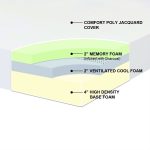 - Mattress layers: 3″ memory foam, 2″ Super Soft Foam with pressure relief system and 5″ high density foam