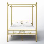 • Full size French Country Four Poster Metal Canopy Bed in Gold Finish