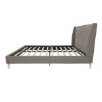 Get the royal treatment with this Full size Grey Linen Upholstered Platform Bed with Wingback Headboard. The wingback headboard is covered in elegant tufted linen, which extends all the way around the equally stunning bed base. Thanks to the unique bentwood slat system, you’ll enjoy superior back support with excellent pressure distribution. As well, the slats allow air to pass freely beneath your bed, keeping you cool and ensuring your mattress maintains its freshness and lasts for years to come. The four wooden legs are slanted for maximum support, with an extra two metal legs and center rail providing additional structure and comfort. No need for a box spring or foundation either—just add a coil or memory-foam bed mattress and luxury bedding, then settle down for a great night’s sleep! The classic design with regal touches makes this bed frame the perfect addition to any bedroom or an ideal choice for a guest bed.