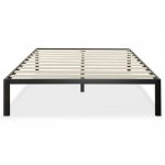 Full Size Modern Black Metal Platform Bed Frame with Wood Slats