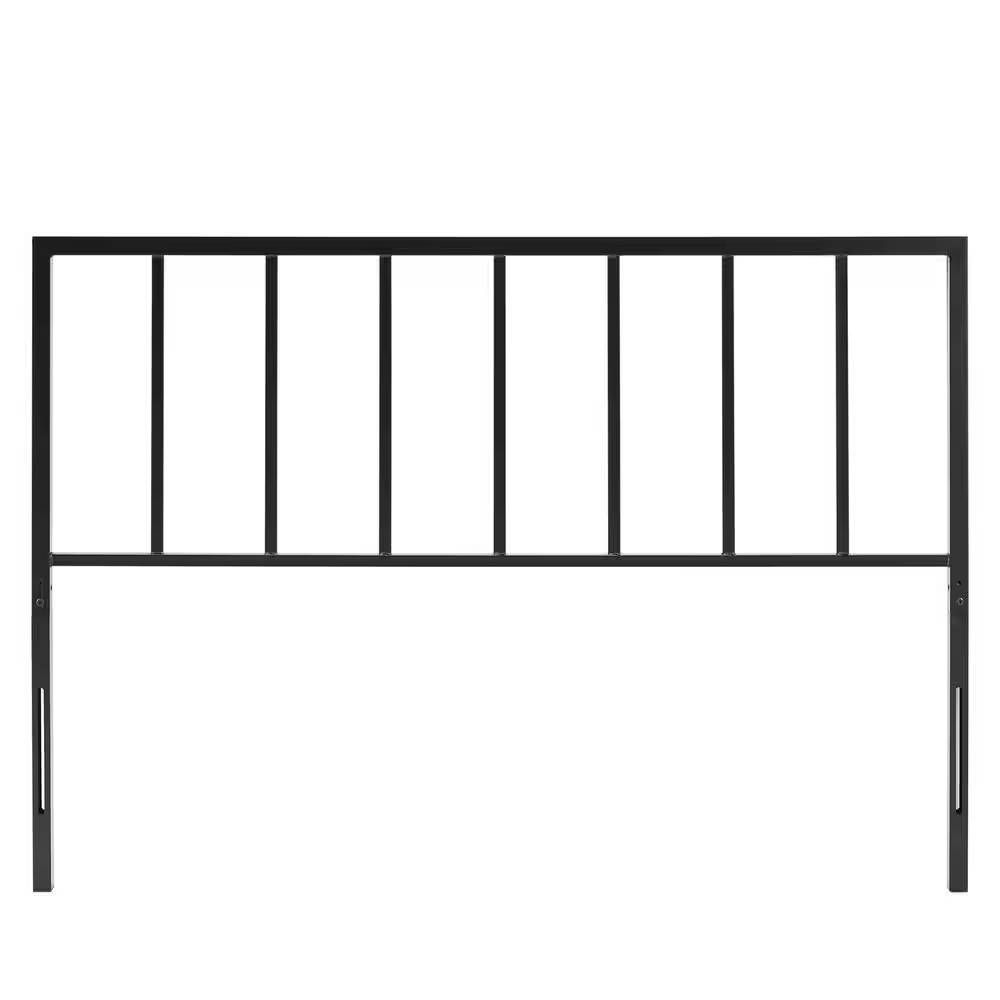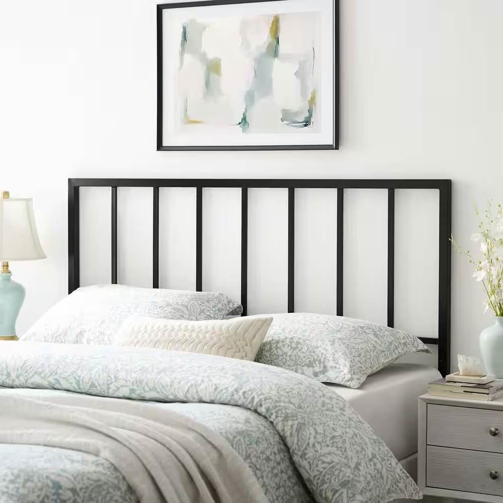 Elevate the look and feel of a teenager’s bedroom or guest bedroom with the Full size Modern Classic Black Metal Headboard. Featuring a streamlined silhouette with squared lines and spindle detail, this Full size Modern Classic Black Metal Headboard is a timeless design with a contemporary feel. Durable iron metal with a powder coated finish makes up the frame of this headboard for a sturdy construction that lasts. Create an aesthetic backdrop for all kinds of bedding styles with this modern spindle headboard suitable for most full bed frames. Assembly required.