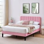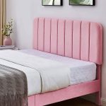 - Full size Pink Upholstered Platform Bed Frame with Headboard