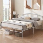 • Full size White Metal Platform Bed Frame with Arched Headboard