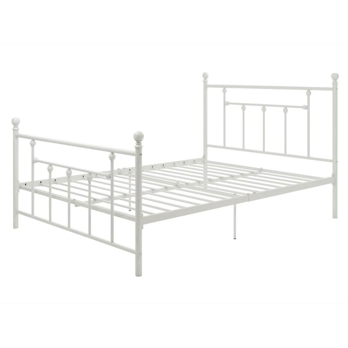 - Full size White Metal Platform Bed Frame with Headboard and Footboard