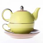 • Green Yellow Porcelain Ceramic Teapot Cup Set Dishwasher and Microwave Safe