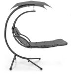 Relax in style with this Single Person Sturdy Modern Chaise Lounger Hammock Chair Porch Swing. Made of heavy duty powder coated metal frame and all weather-resist fabric with a pillow, umbrella and cushion, supporting up to 265lbs. The modern design fits with any backyard decor. It comes with build-in 46″ canopy, and 2″ foam filled PVC coated polyester cushion with built-in pillow for extra comfort. It is also a great piece that allows you to sit back and enjoy the breeze in your backyard.